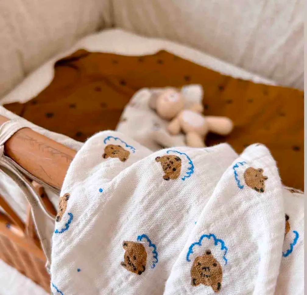 O acessório essencial para toda a família! A nossa musselina Teddy é extremamente versátil — pode ser usada como babete, manta, fralda de apoio ao ombro depois da amamentação ou até como lenço para si ou para os mais pequenos.