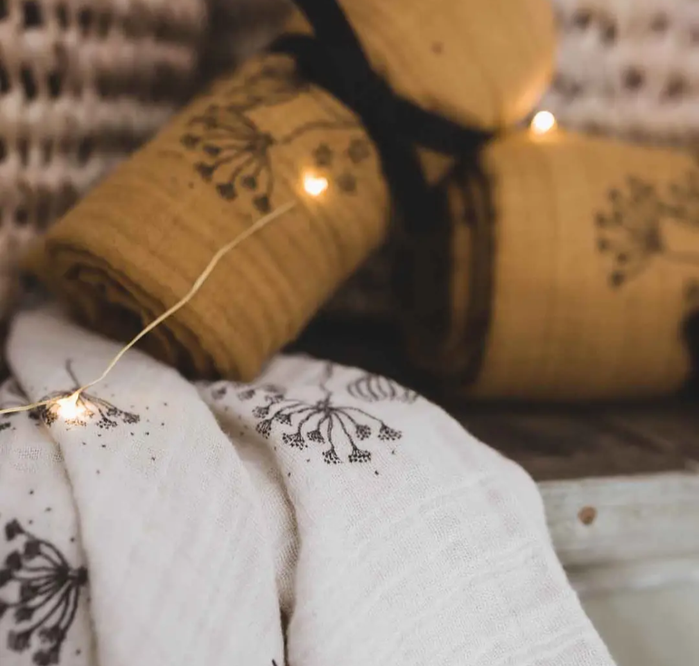 A nossa musselina Flor mostarda é um acessório indispensável para o dia a dia da família. Super prática, pode ser usada de várias formas: como babete, manta, fralda, trocador, apoio ao ombro depois da mamadeira ou até como lenço para si ou para o seu bebé.